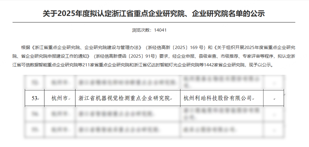 省企业研究院的认定,是对利珀实力的高度认可。未来,华体会(中国)将持续聚焦产业前沿与“卡脖子”技术找准突破方向,不断增强企业核心竞争力,争做浙江省科技创新的“中坚力量”,为工业视觉检测链上下游的协同发展注入更强动力。
