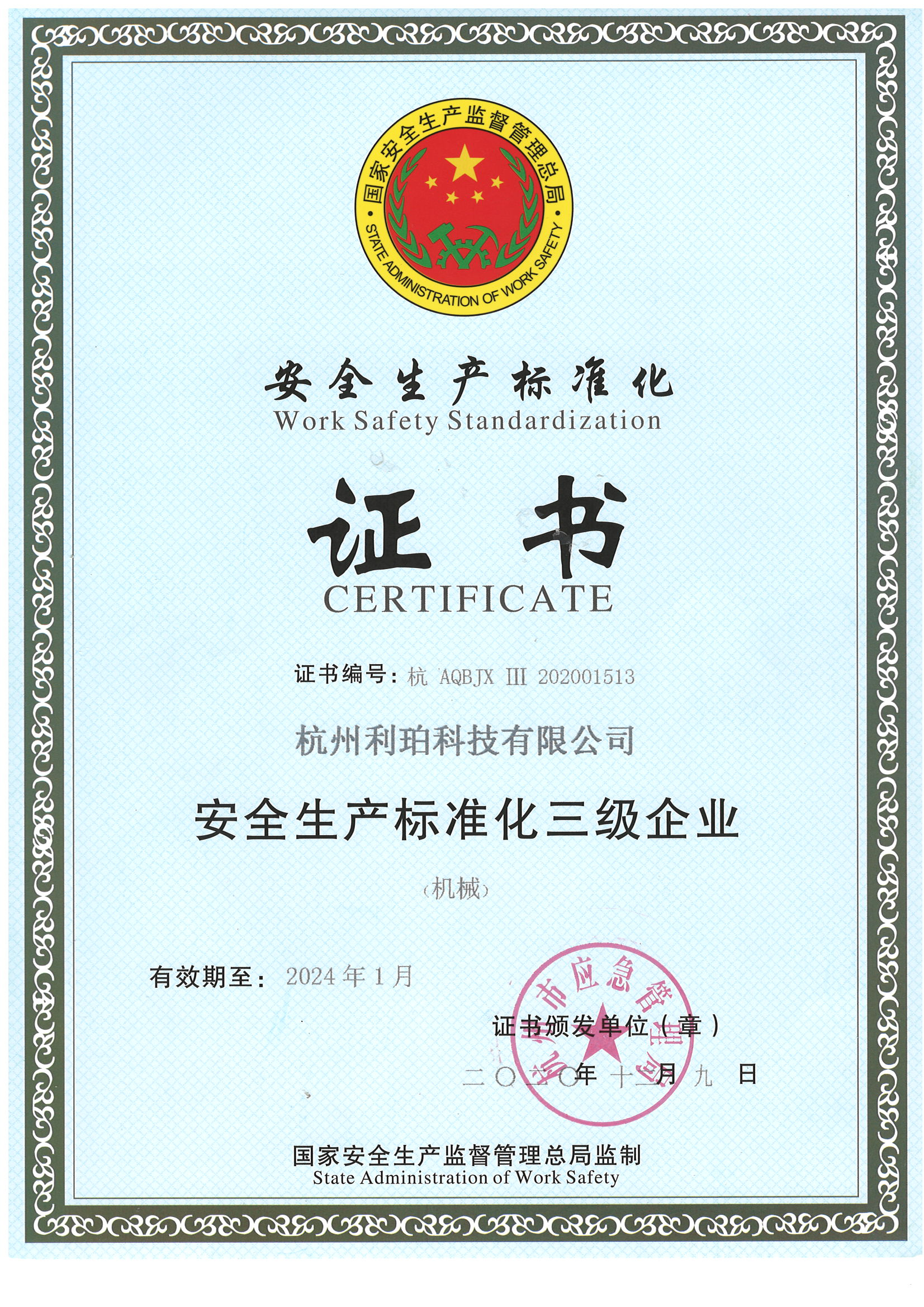 安全生产标准化证书