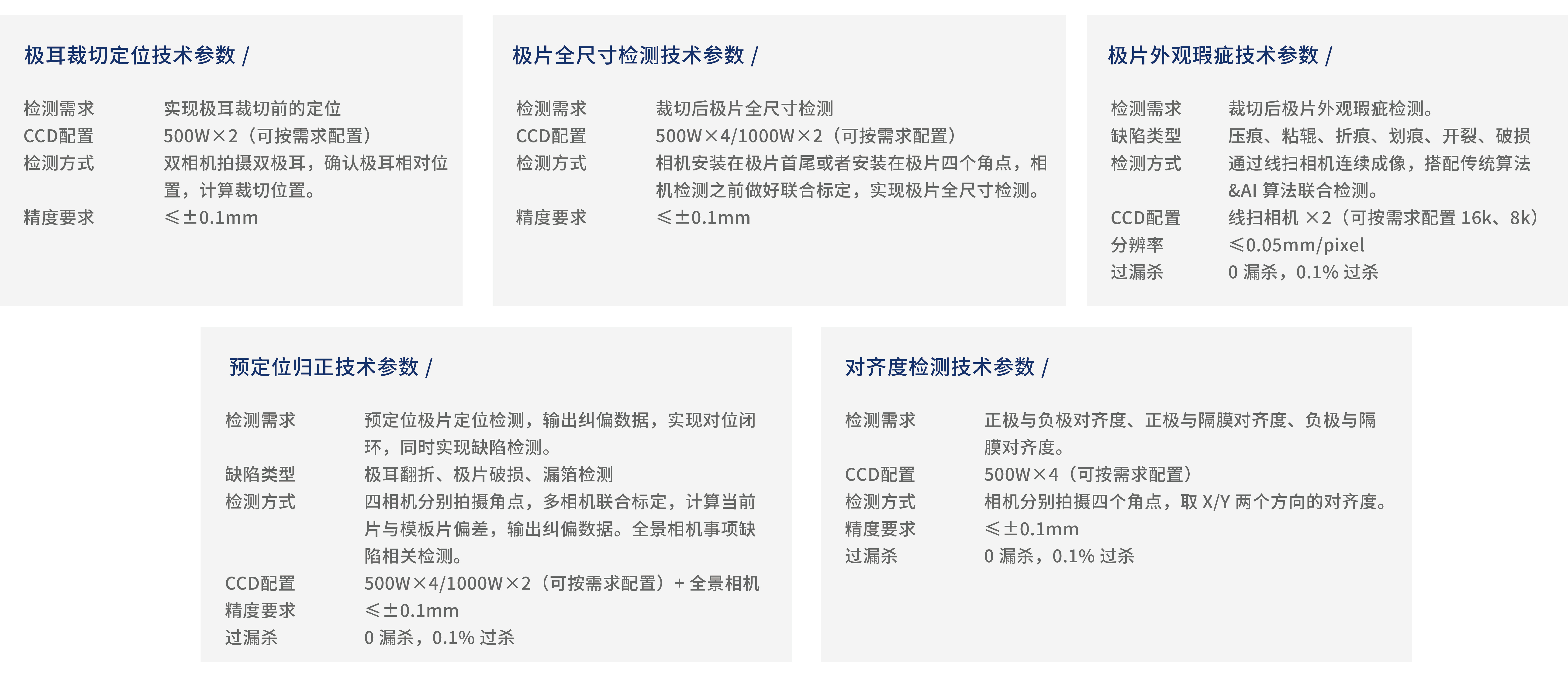 极耳裁切定位&极片全尺寸检测、极片外观瑕疵检测、预定位归正